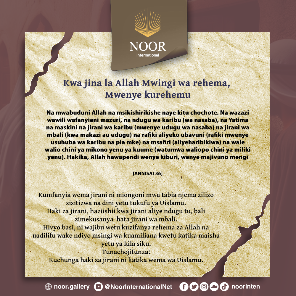 Haki za jirani, haziishii kwa jirani aliye ndugu tu, bali zimekusanya hata jirani wa mbali.
