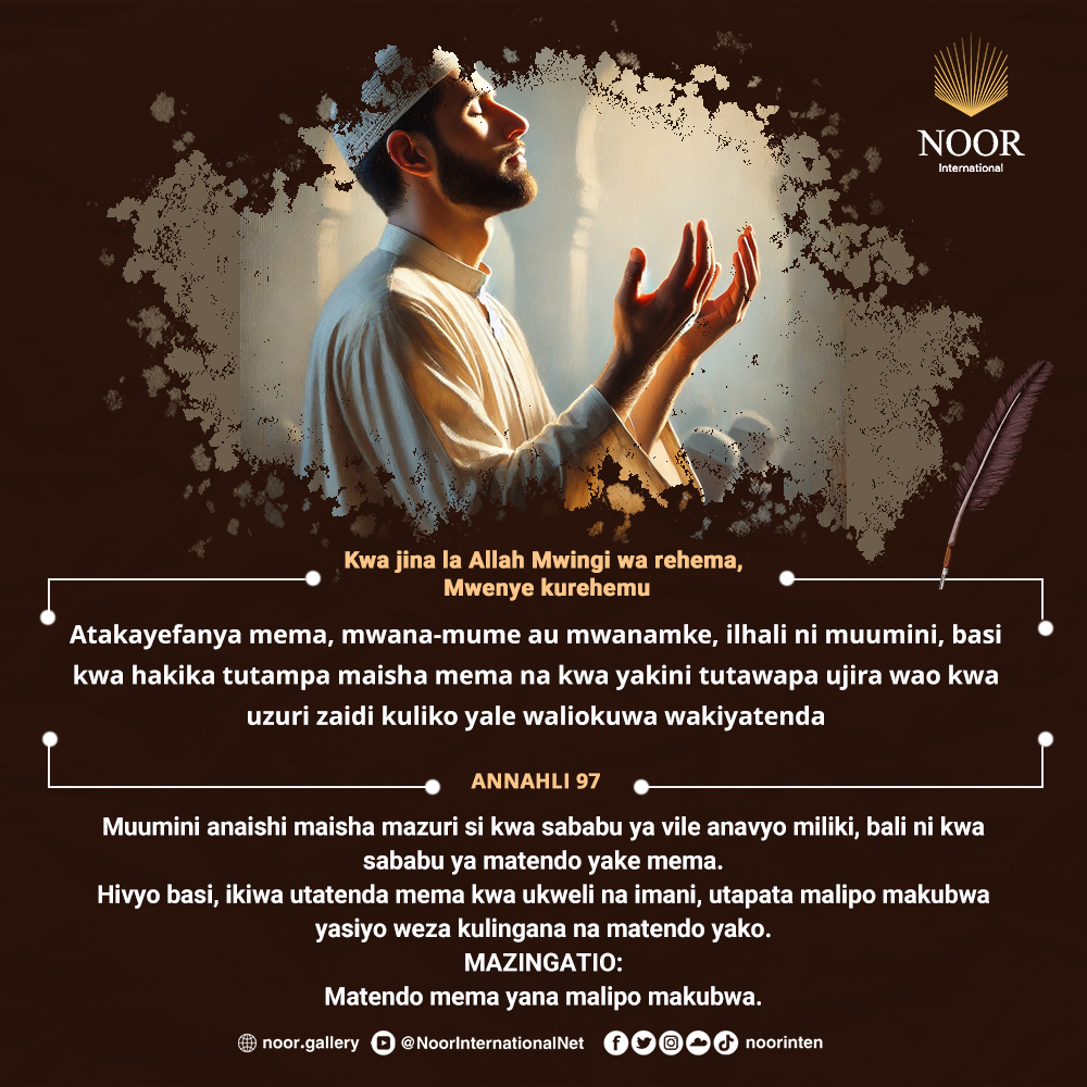 Muumini anaishi maisha mazuri si kwa sababu ya vile anavyo miliki, bali ni kwa sababu ya matendo yake mema.
