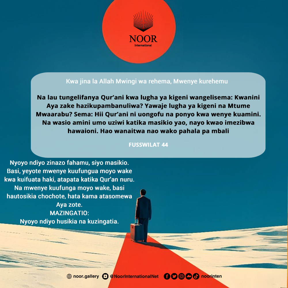 Basi, yeyote mwenye kuufungua moyo wake kwa kuifuata haki, atapata katika Qur’an nuru.