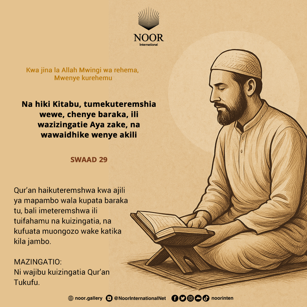 Qur’an haikuteremshwa kwa ajili ya mapambo wala kupata baraka tu, bali imeteremshwa ili tuifahamu na kuizingatia, na kufuata muongozo wake katika kila jambo.