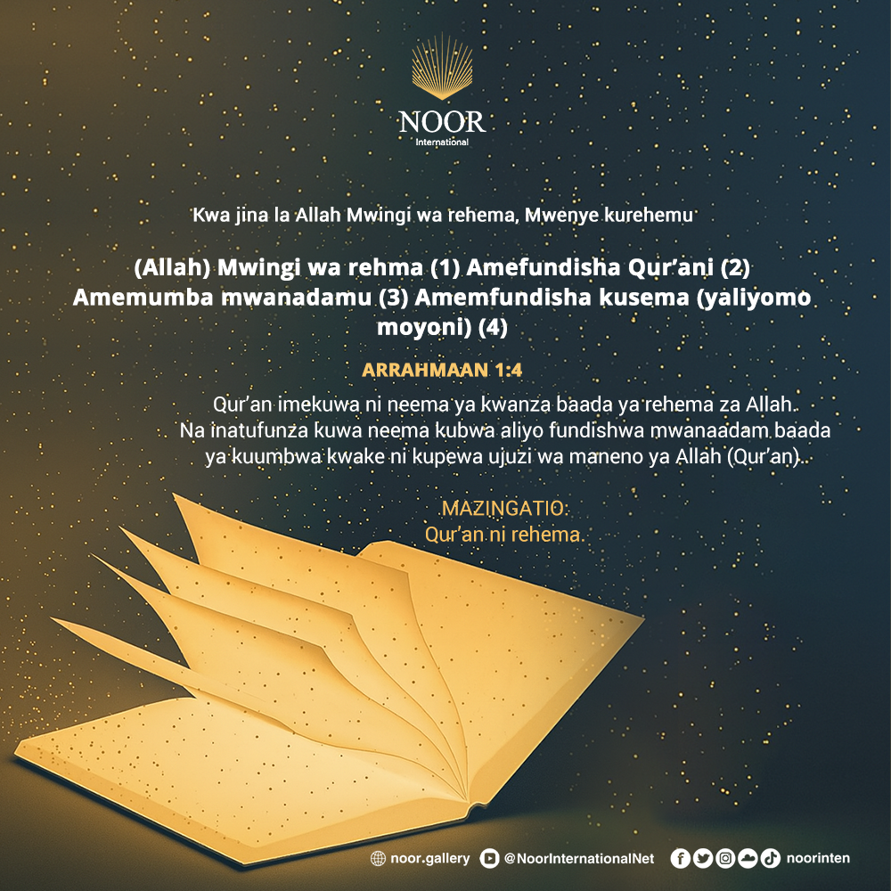Na inatufunza kuwa neema kubwa aliyo fundishwa mwanaadam baada ya kuumbwa kwake ni kupewa ujuzi wa maneno ya Allah (Qur’an).