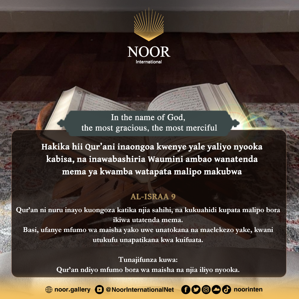 Qur’an ni nuru inayo kuongoza katika njia sahihi, na kukuahidi kupata malipo bora ikiwa utatenda mema.
