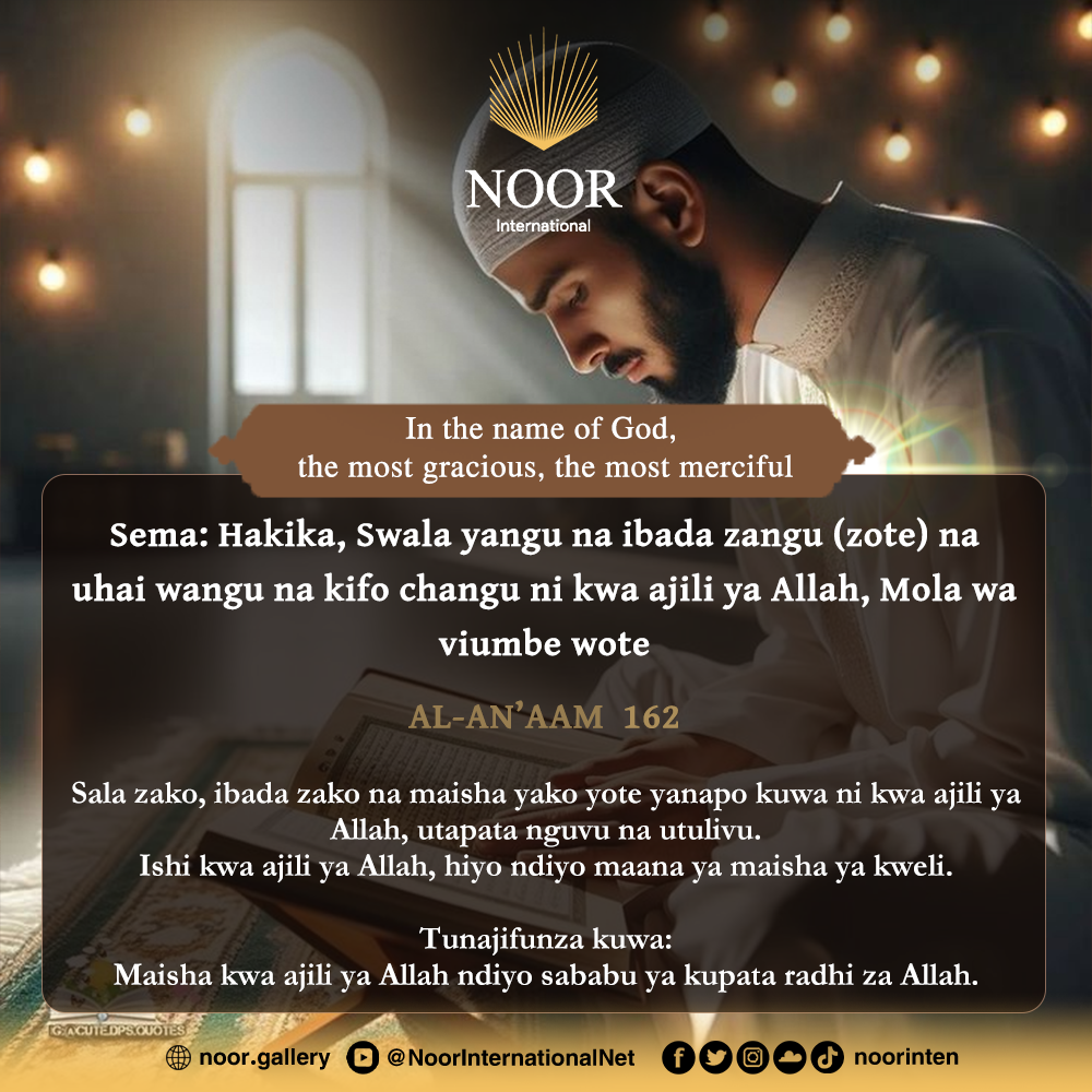 Sala zako, ibada zako na maisha yako yote yanapo kuwa ni kwa ajili ya Allah, utapata nguvu na utulivu.