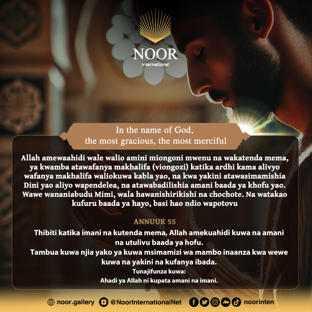 Thibiti katika imani na kutenda mema, Allah amekuahidi kuwa na amani na utulivu baada ya hofu.