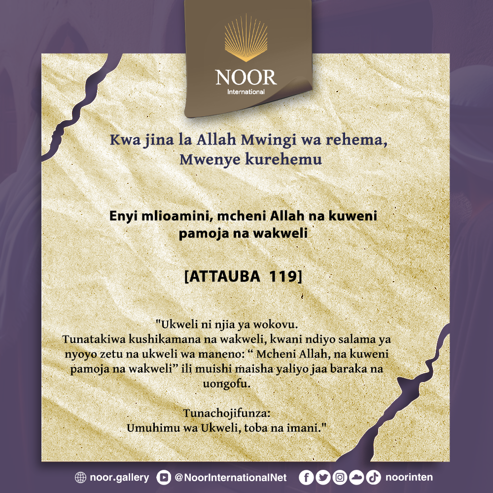 Tunatakiwa kushikamana na wakweli, kwani ndiyo salama ya nyoyo zetu na ukweli wa maneno: “ Mcheni Allah, na kuweni pamoja na wakweli” ili muishi maisha yaliyo jaa baraka na uongofu.