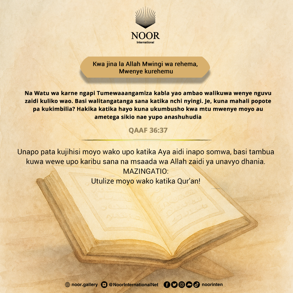 Unapo pata kujihisi moyo wako upo katika Aya aidi inapo somwa,