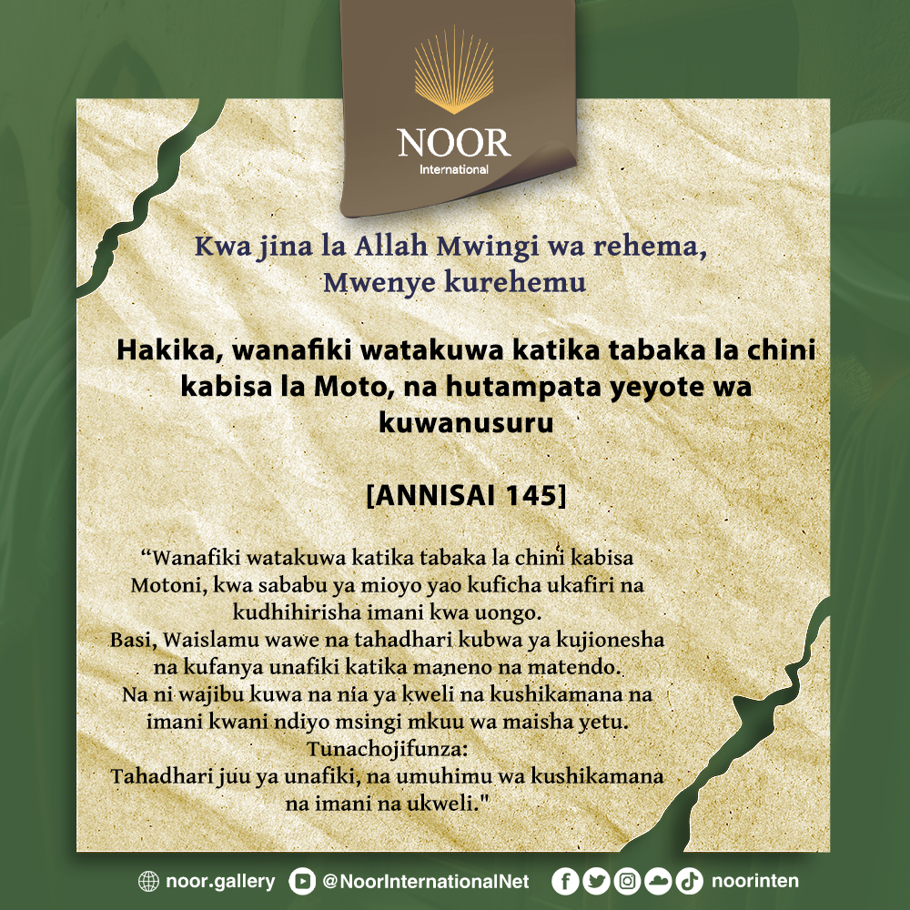 Wanafiki watakuwa katika tabaka la chini kabisa Motoni, kwa sababu ya mioyo yao kuficha ukafiri na kudhihirisha imani kwa uongo.