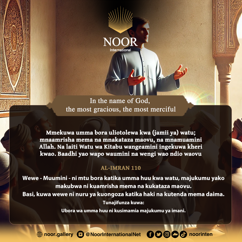 Wewe - Muumini - ni mtu bora katika umma huu kwa watu, majukumu yako makubwa ni kuamrisha mema na kukataza maovu.