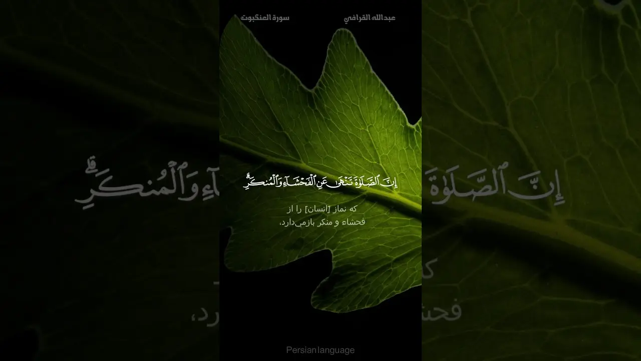 ﴿ [اى پیامبر] آنچه را از کتاب به تو وحی شده است تلاوت کن، و نماز را برپا دار، که نماز [انسان] را از فحشا و منکر باز میدارد، و به يقين ذِكْر الله بزرگتر است.﴾ (العنكبوت: 45)