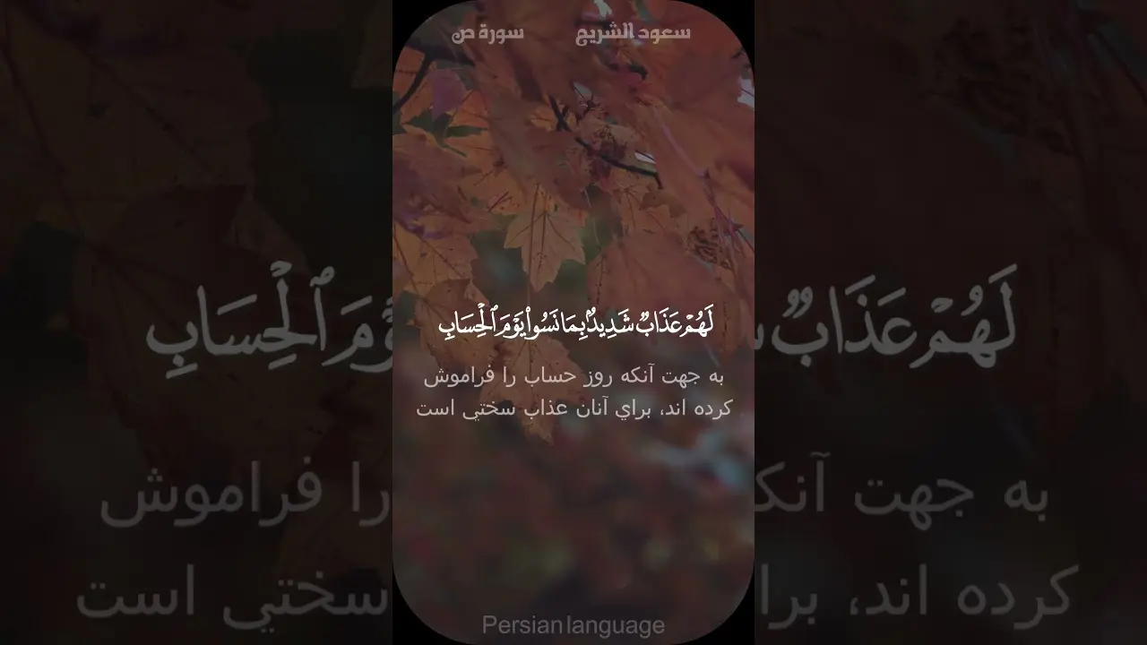 ﴿ و از هوای نفس پیروی مکن، که تو را از راه الله منحرف می سازد. به يقين کسانی که از راه الله منحرف میشوند، به خاطر اینکه روز حساب را فراموش کردهاند براى آنان عذاب سختی است.﴾