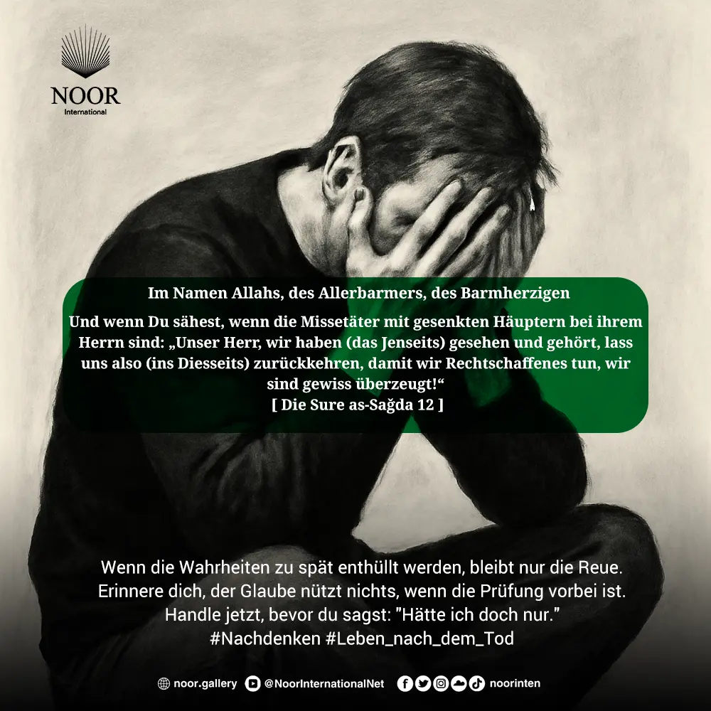 Wenn die Wahrheiten zu spät enthüllt werden, bleibt nur die Reue. Erinnere dich, der Glaube nützt nichts, wenn die Prüfung vorbei ist. Handle jetzt, bevor du sagst: "Hätte ich doch nur."