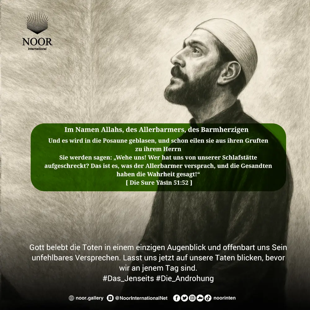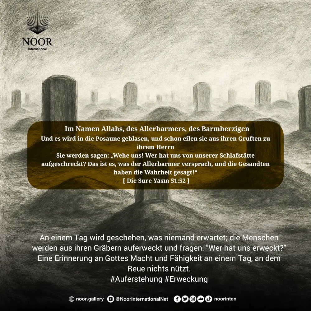 Gott belebt die Toten in einem einzigen Augenblick und offenbart uns Sein unfehlbares Versprechen. Lasst uns jetzt auf unsere Taten blicken, bevor wir an jenem Tag sind.