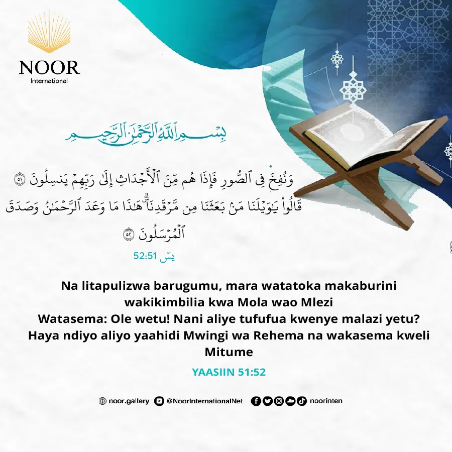 Na litapulizwa barugumu, mara watatoka makaburini wakikimbilia kwa Mola wao Mlezi