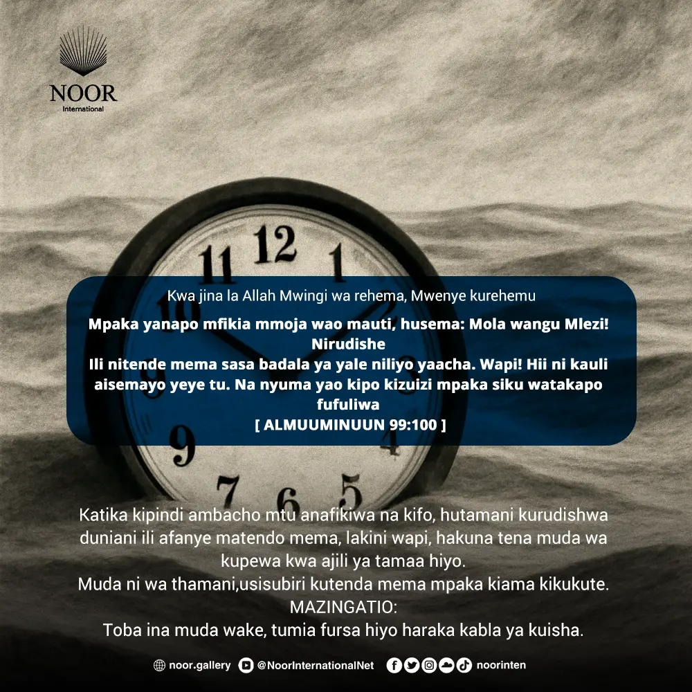 Muda ni wa thamani,usisubiri kutenda mema mpaka kiama kikukute.
