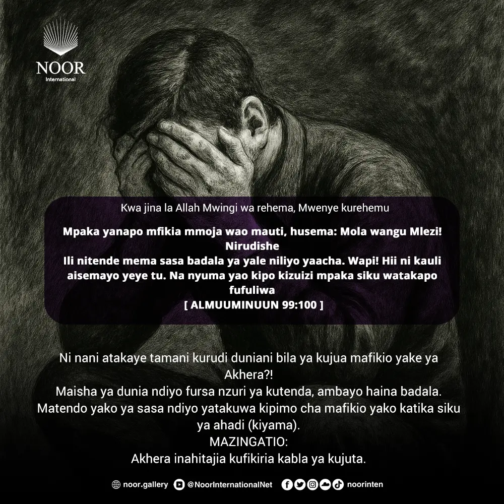 Ni nani atakaye tamani kurudi duniani bila ya kujua mafikio yake ya Akhera?!