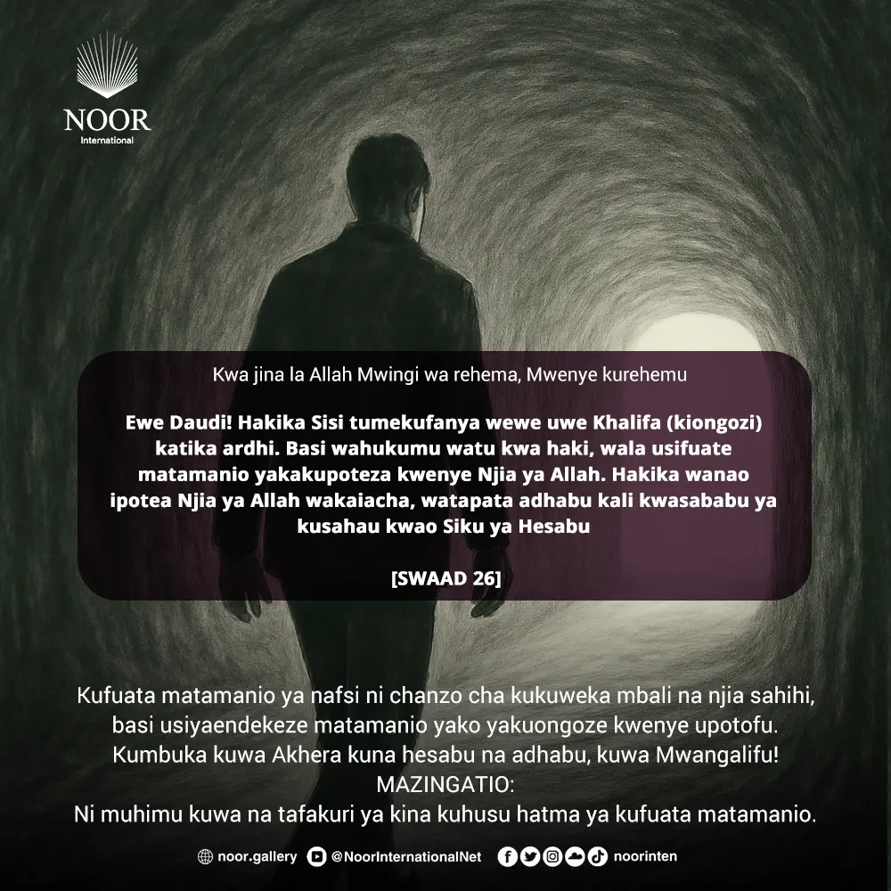 Kufuata matamanio ya nafsi ni chanzo cha kukuweka mbali na njia sahihi, basi usiyaendekeze matamanio yako yakuongoze kwenye upotofu.