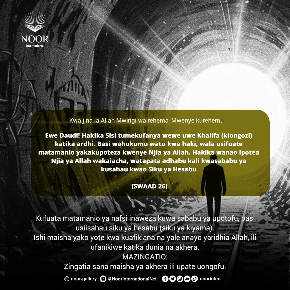 Kufuata matamanio ya nafsi inaweza kuwa sababu ya upotofu, basi usiisahau siku ya hesabu (siku ya kiyama).