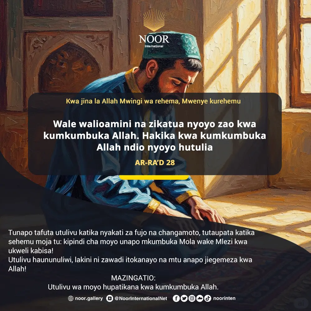 Tunapo tafuta utulivu katika nyakati za fujo na changamoto, tutaupata katika sehemu moja tu: kipindi cha moyo unapo mkumbuka Mola wake Mlezi kwa ukweli kabisa!