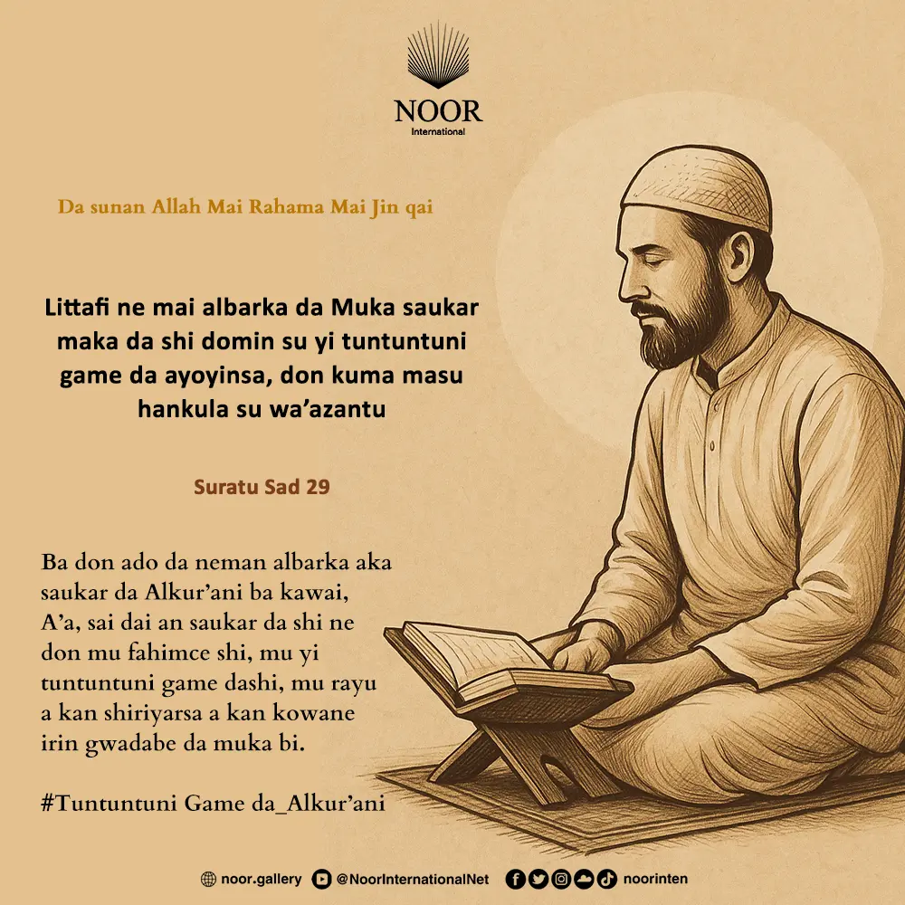 “Littafi ne mai albarka da Muka saukar maka da shi domin su yi tuntuntuni game da ayoyinsa, don kuma masu hankula su wa’azantu.” [Sad: 29]