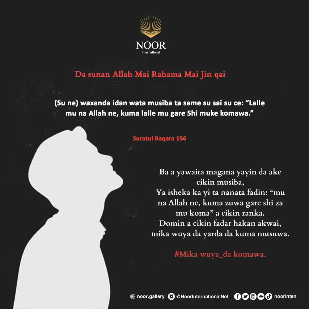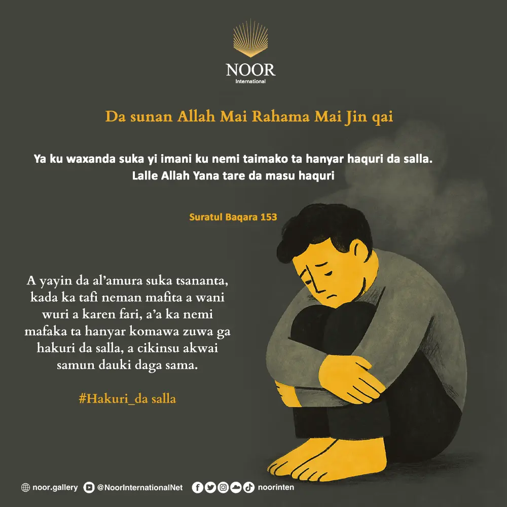 “Ya ku waxanda suka yi imani ku nemi taimako ta hanyar haquri da salla. Lalle Allah Yana tare da masu haquri.” [Bakara: 153]