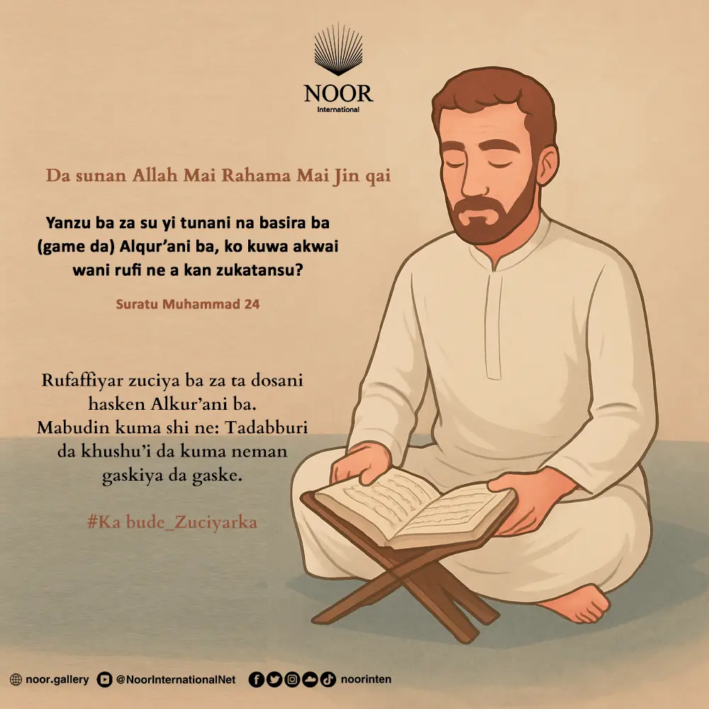“Yanzu ba za su yi tunani na basira ba (game da) Alqur’ani ba, ko kuwa akwai wani rufi ne a kan zukatansu?” [Muhammad: 24