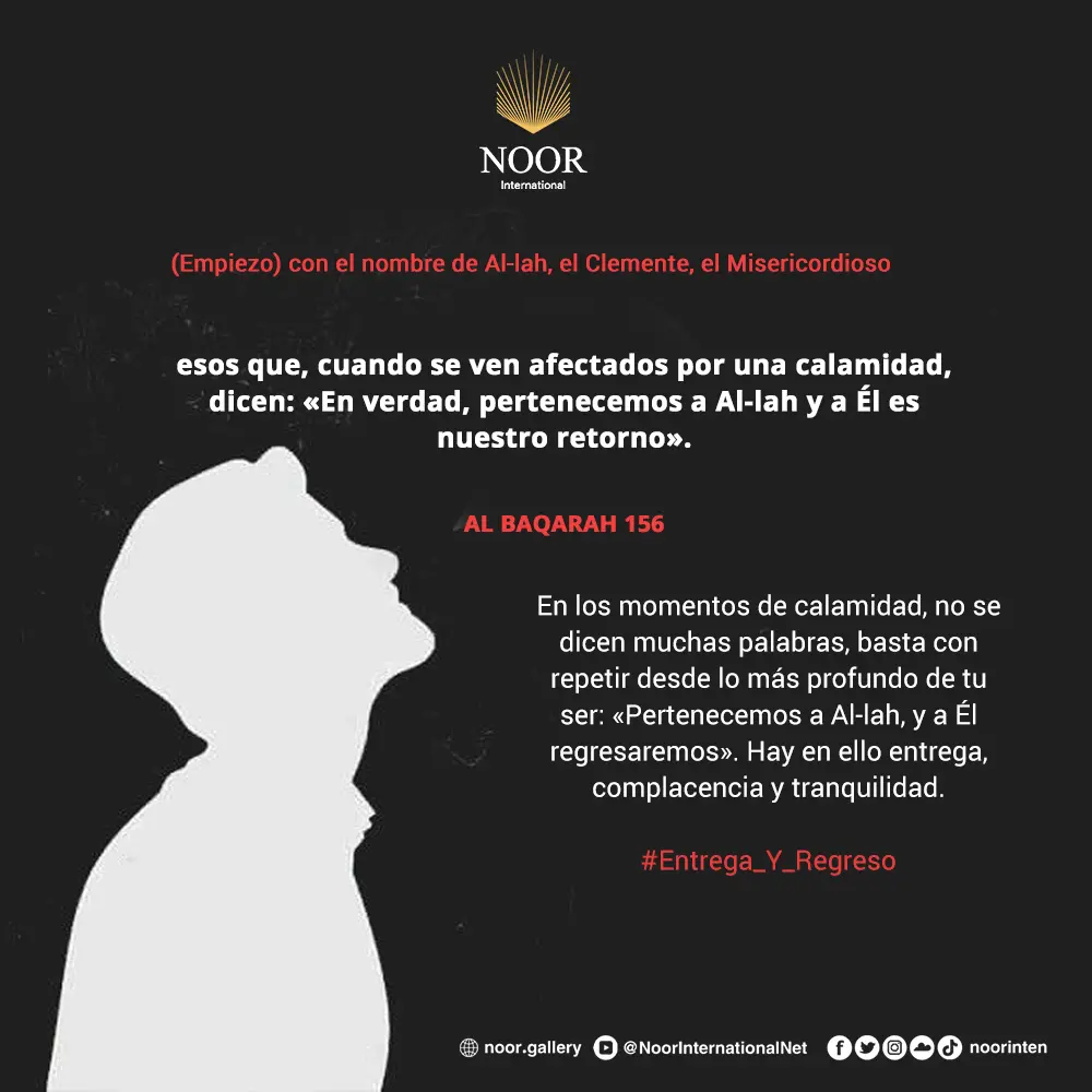 En los momentos de calamidad, no se dicen muchas palabras, basta con repetir desde lo más profundo de tu ser: «Pertenecemos a Al-lah, y a Él regresaremos». Hay en ello entrega, complacencia y tranquilidad.