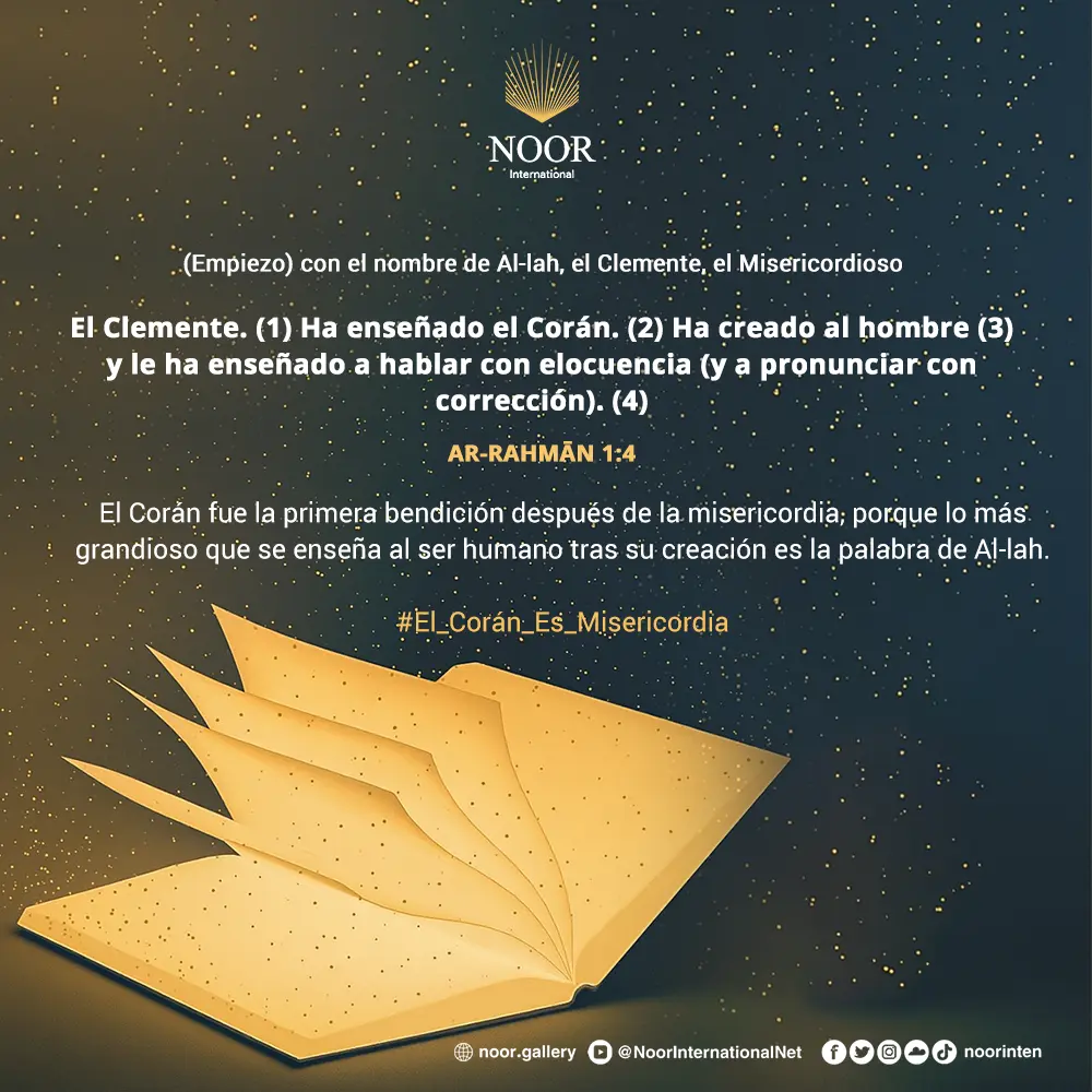 El Corán fue la primera bendición después de la misericordia, porque lo más grandioso que se enseña al ser humano tras su creación es la palabra de Al-lah.