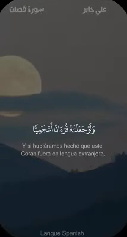 Y si hubiéramos hecho que este Corán fuera en lengua extranjera, (los idólatras de entre los árabes) habrían dicho: «¿Por qué sus aleyas no han sido explicadas (en lengua árabepara que lo podamos entender bien)?». ¿(Un libro) en lengua extranjera cuando (el Profeta) es árabe? Diles (¡oh, Muhammad!): «Para los creyentes, este Corán es una guía y una cura»; y quienes no creen en él tienen taponados los oídos (y no pueden ni escucharlo ni comprenderlo); están ciegos con respecto a él (y no pueden seguirlo). (Se asemejan a) quienes son llamados de un lugar lejano (y no pueden oír la llamada ni responder a ella).