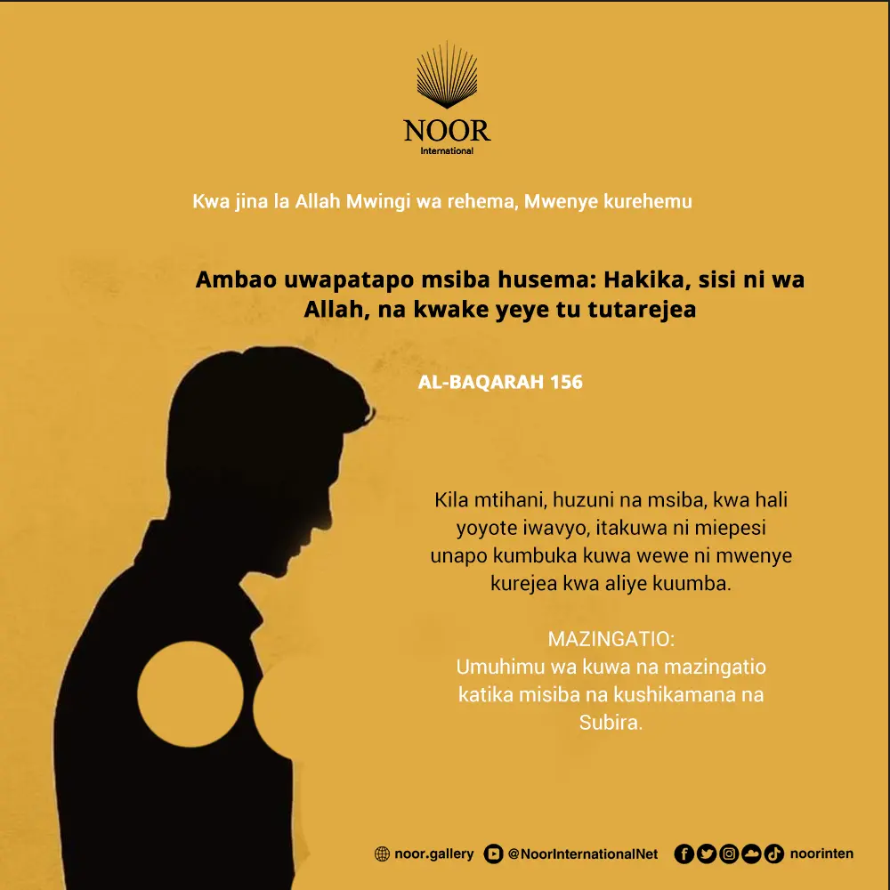 “Wale ambao wakifikwa na msiba husema: Hakika sisi ni wa Allah, na kwake Yeye hakika tutarejea”. Surat Al-Baqara: 153.