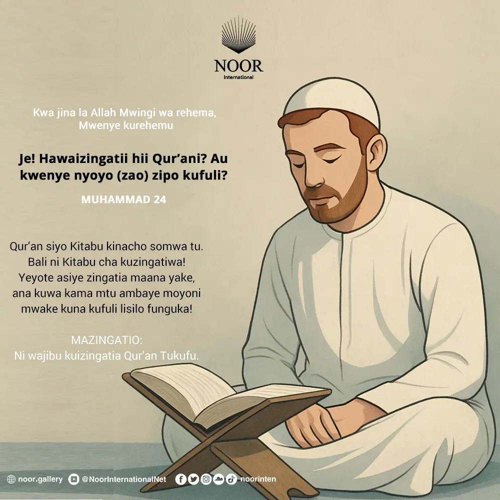 Qur’an haikuteremshwa kwa ajili ya mapambo wala kupata baraka tu, bali imeteremshwa ili tuifahamu na kuizingatia, na kufuata muongozo wake katika kila jambo.