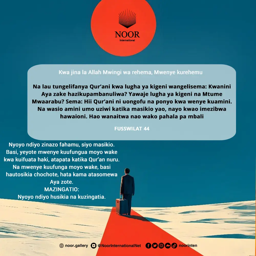 Qur’an si gumzo la lugha au kundi fulani, bali ni muongozo na ponyo ya kila moyo wenye imani.