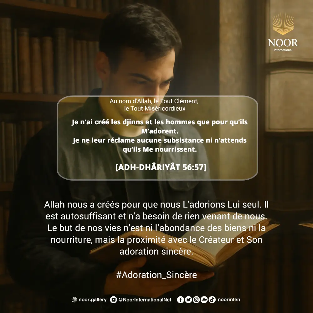 Allah nous a créés pour que nous L'adorions Lui seul. Il est autosuffisant et n'a besoin de rien venant de nous.