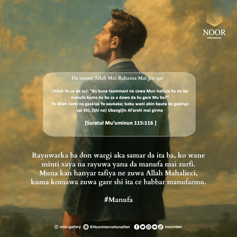 Muna kan hanyar tafiya ne zuwa Allah Mahalicci, kuma komawa zuwa gare shi ita ce babbar manufarmu.