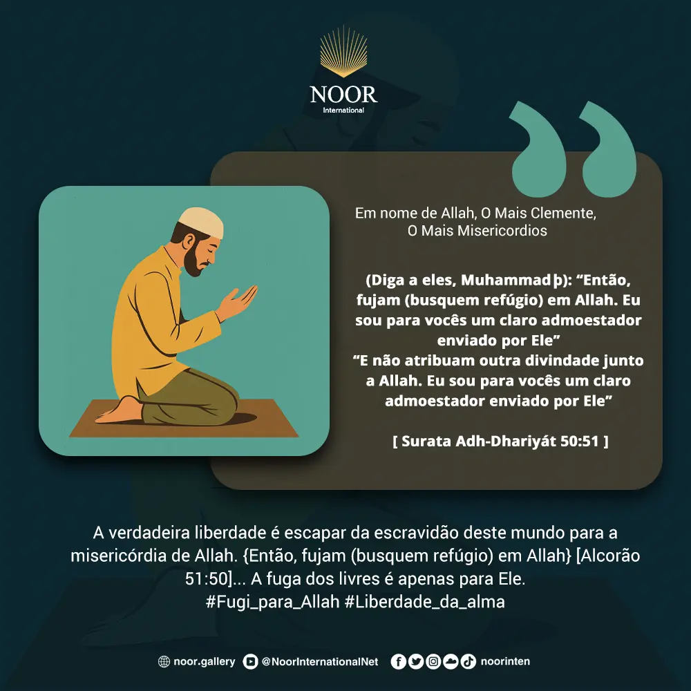 A verdadeira liberdade é escapar da escravidão deste mundo para a misericórdia de Allah. {Então, fujam (busquem refúgio) em Allah} [Alcorão 51:50]... A fuga dos livres é apenas para Ele.