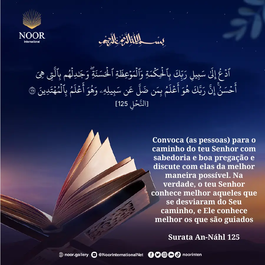 {Convoca (as pessoas) para o caminho do teu Senhor com sabedoria e boa pregação e discute com elas da melhor maneira possível. Na verdade, o teu Senhor conhece melhor aqueles que se desviaram do Seu caminho, e Ele conhece melhor os que são guiados.} [Corão 16:125]