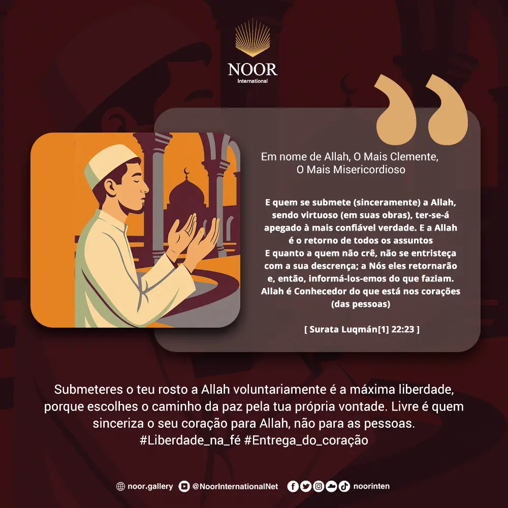Submeteres o teu rosto a Allah voluntariamente é a máxima liberdade, porque escolhes o caminho da paz pela tua própria vontade. Livre é quem sinceriza o seu coração para Allah, não para as pessoas.