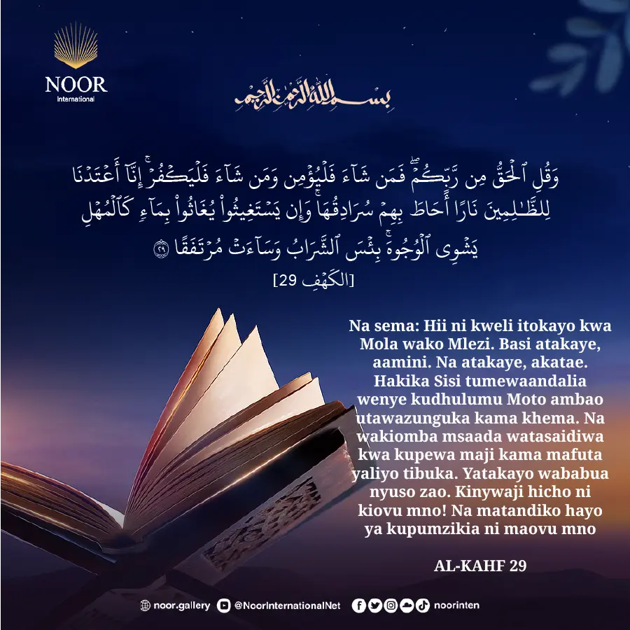 Uhuru ni maamuzi ya kuchagua, kwani haki inatoka kwa Mola wenu Mlezi tu.