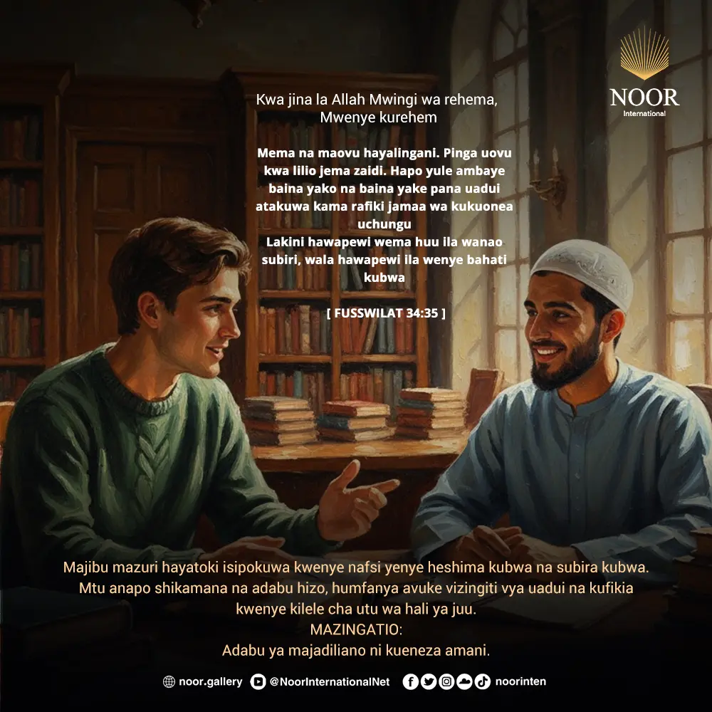 Mtu anapo shikamana na adabu hizo, humfanya avuke vizingiti vya uadui na kufikia kwenye kilele cha utu wa hali ya juu.